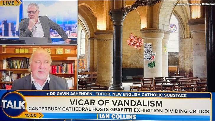 Talk Tv asks Gavin Ashenden:- "Whats with the Canterbury Graffiti vandalism?"